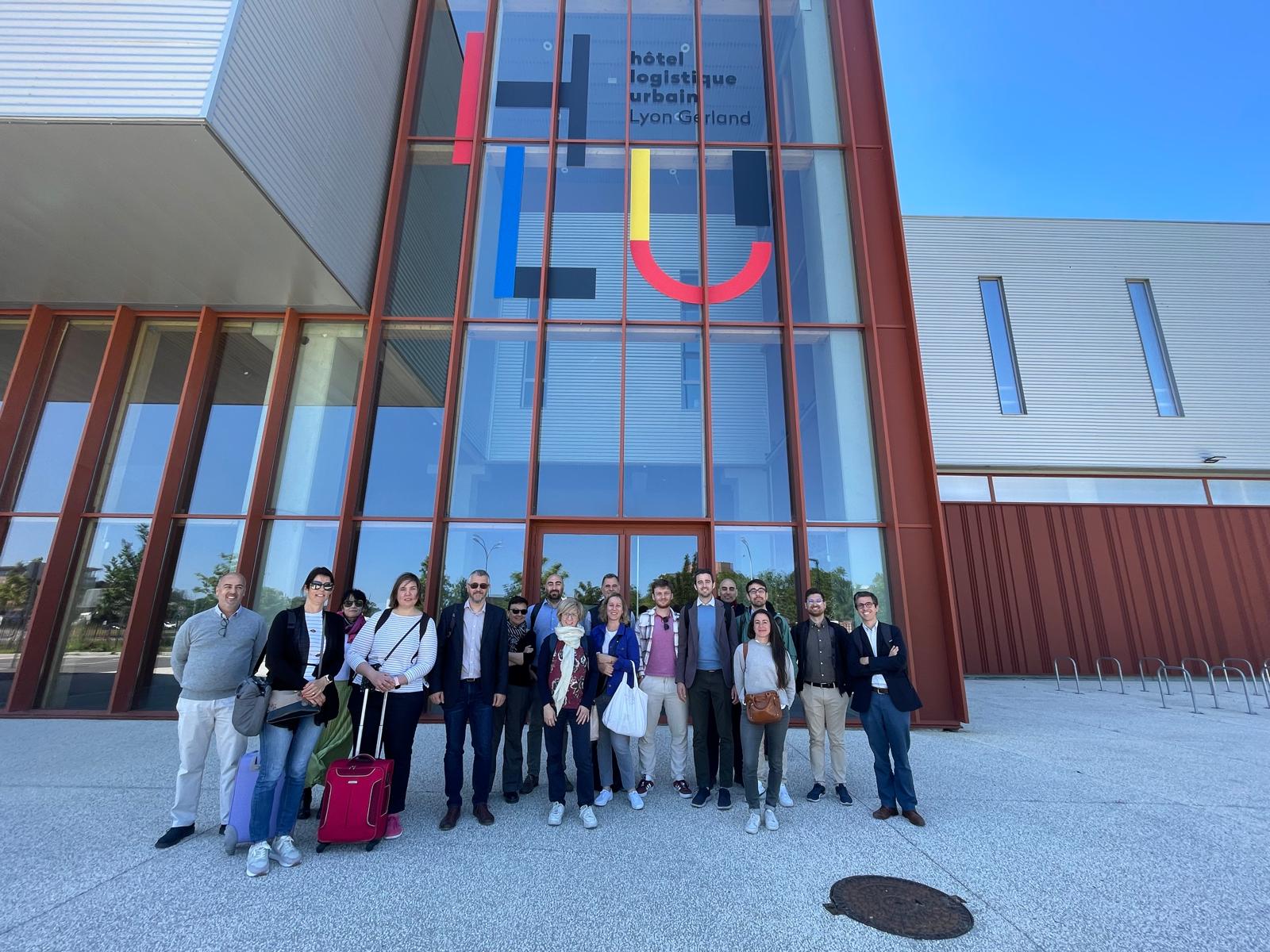 The consortium meeting closed with a site visit to the Hôtel Logistique Urbain – HLU Lyon Gerland, a logistic hub located in the southern outskirts of the city. Inaugurated in 2024 and covering a surface of 29,000 m2, it represents one of the biggest logistic hubs in France with an innovative and low-emission building aimed at fostering a more sustainable last-mile delivery in the Lyon metropolitan area. Thanks to Elsa Roussellet of LPA Mobilités for introducing us to this emblematic site of low-carbon logistics!